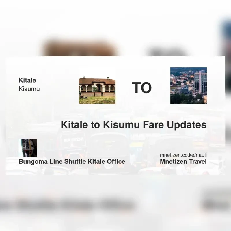 The fare from Kitale to Kisumu with Bungoma line shuttle Kitale office is ksh 600. Prices may vary during holidays and school terms.