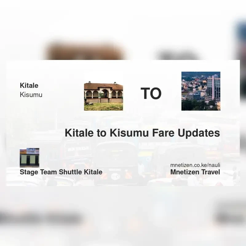 The fare from Kitale to Kisumu with STAGE TEAM SHUTTLE KITALE is ksh 600. Prices may vary during holidays and school terms.