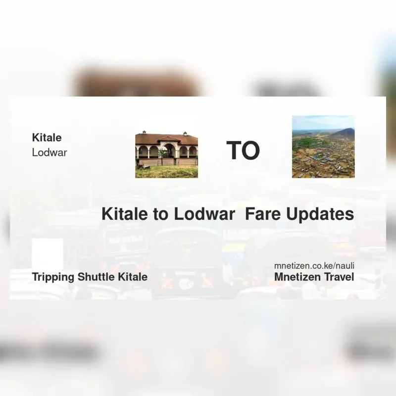 The fare from Kitale to Lodwar with Tripping shuttle kitale is ksh 1,300. Prices may vary during holidays and school terms.