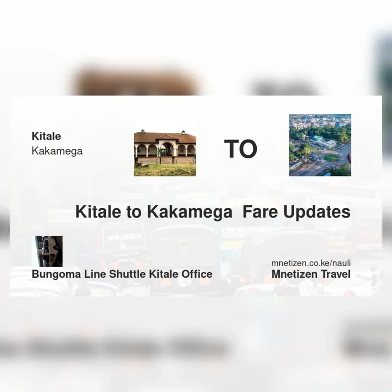 The fare from Kitale to Kakamega with Bungoma line shuttle Kitale office is ksh 400. Prices may vary during holidays and school terms.