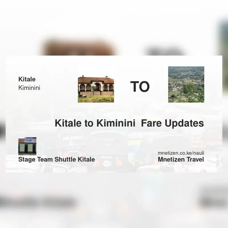 The fare from Kitale to Kiminini with STAGE TEAM SHUTTLE KITALE is ksh 100. Prices may vary during holidays and school terms.