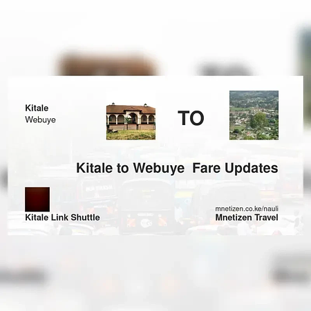The fare from Kitale to Webuye with Kitale Link shuttle is ksh 300. Prices may vary during holidays and school terms.