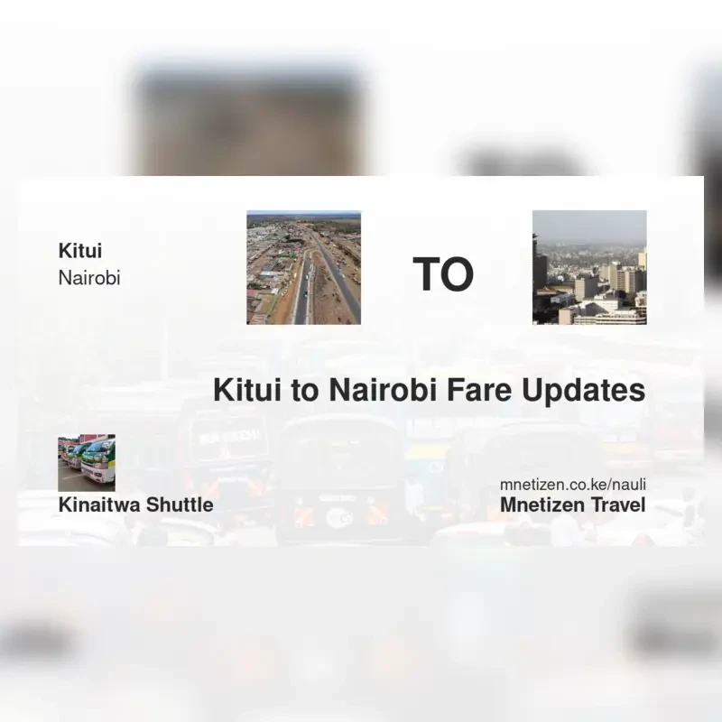 The fare from Kitui to Nairobi with Kinaitwa Shuttle is ksh 600. Prices may vary during holidays and school terms.