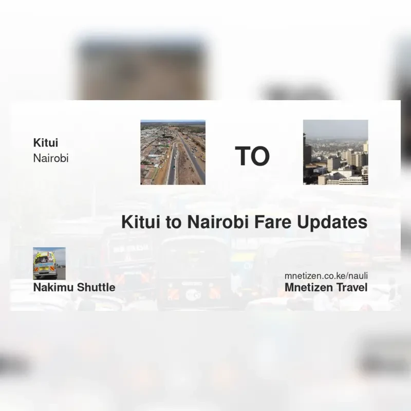 The fare from Kitui to Nairobi with Nakimu Shuttle is ksh 600. Prices may vary during holidays and school terms.
