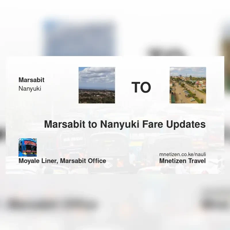 Top operators on this route include Moyale Liner, Marsabit office . Check current schedules and fares.