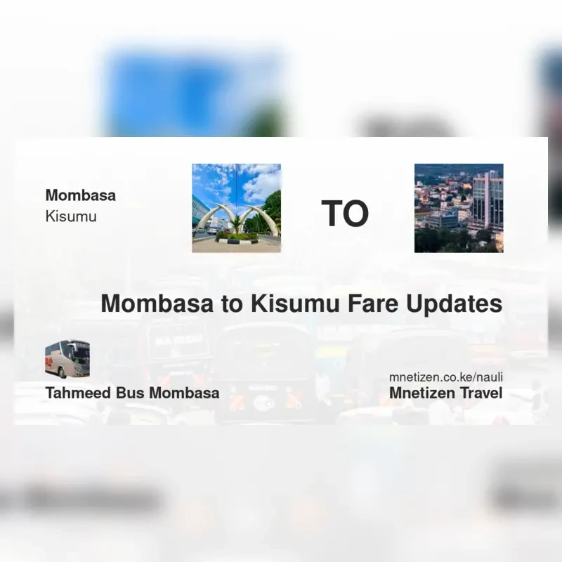 The fare from Mombasa to Kisumu with Tahmeed Bus Mombasa is ksh 3,000. Prices may vary during holidays and school terms.