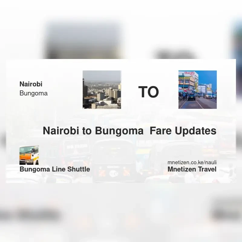 The fare from Nairobi to Bungoma with bungoma line shuttle is ksh 1,600. Prices may vary during holidays and school terms.