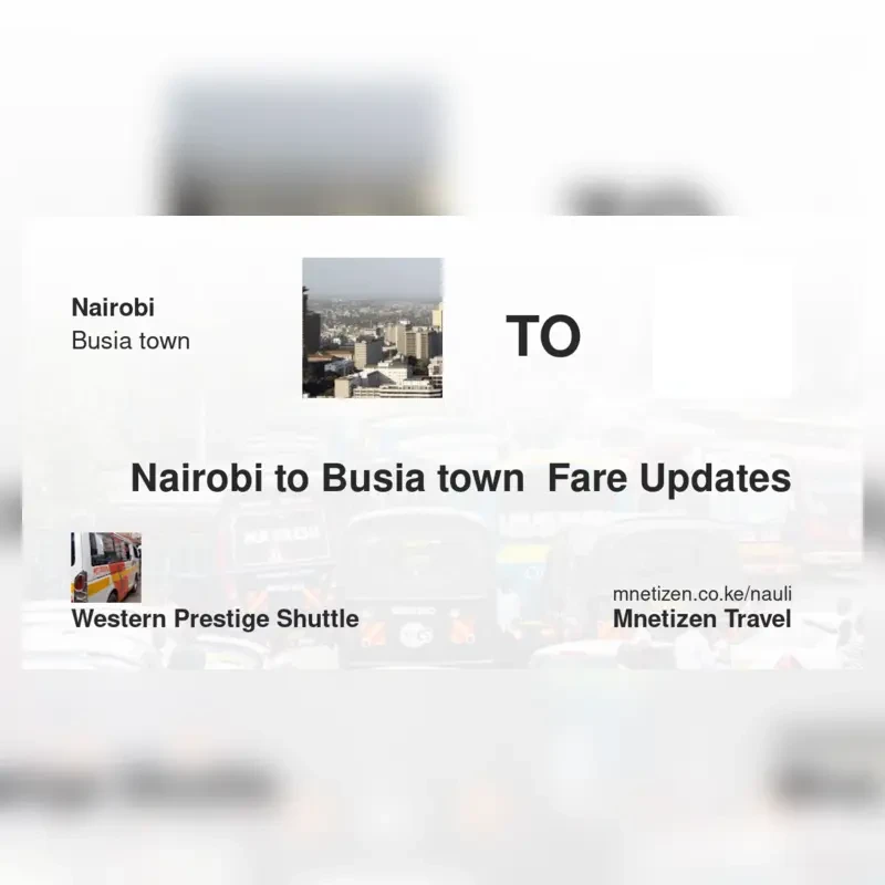 The fare from Nairobi to Busia Town with Western Prestige Shuttle is ksh 1,800. Prices may vary during holidays and school terms.