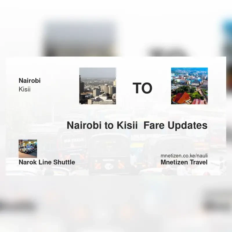 The fare from Nairobi to Kisii with Narok Line shuttle is ksh 1,500. Prices may vary during holidays and school terms.