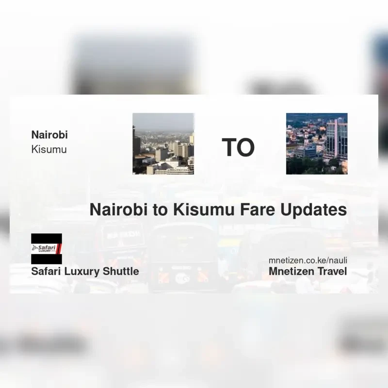 The fare from Nairobi to Kisumu with Safari Luxury Shuttle is ksh 2,000. Prices may vary during holidays and school terms.
