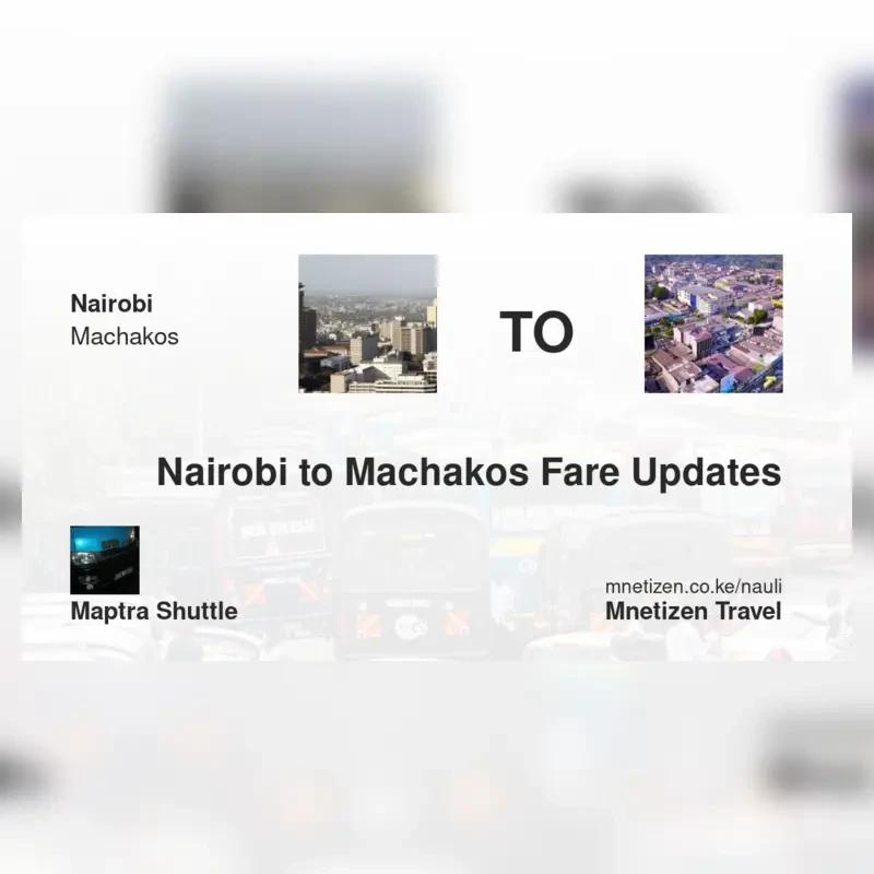 The fare from Nairobi to Machakos with Maptra Shuttle is ksh 250. Prices may vary during holidays and school terms.