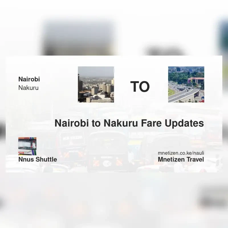 The fare from Nairobi to Nakuru with NNUS shuttle is . Prices may vary during holidays and school terms.