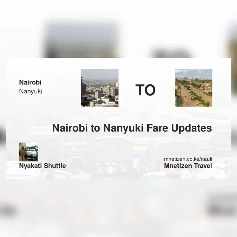 The fare from Nairobi to Nanyuki with Nyakati Shuttle is ksh 600. Prices may vary during holidays and school terms.