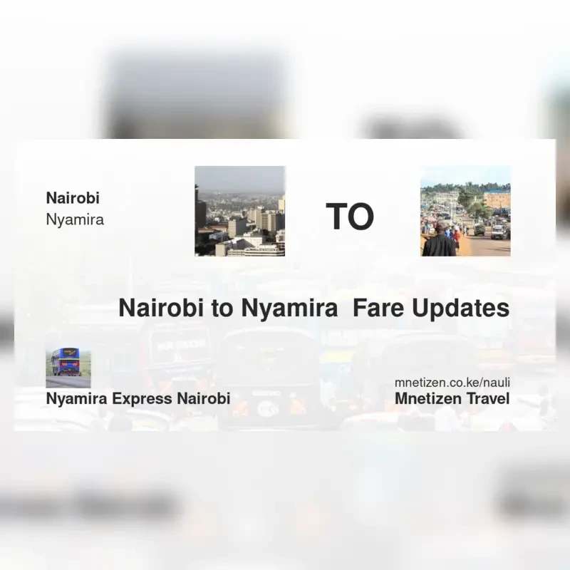 The fare from Nairobi to Nyamira with Nyamira Express Nairobi is ksh 1,500. Prices may vary during holidays and school terms.