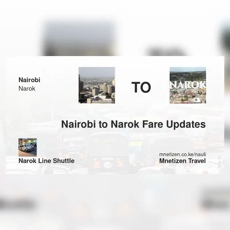The fare from Nairobi to Narok with Narok Line shuttle is ksh 500. Prices may vary during holidays and school terms.