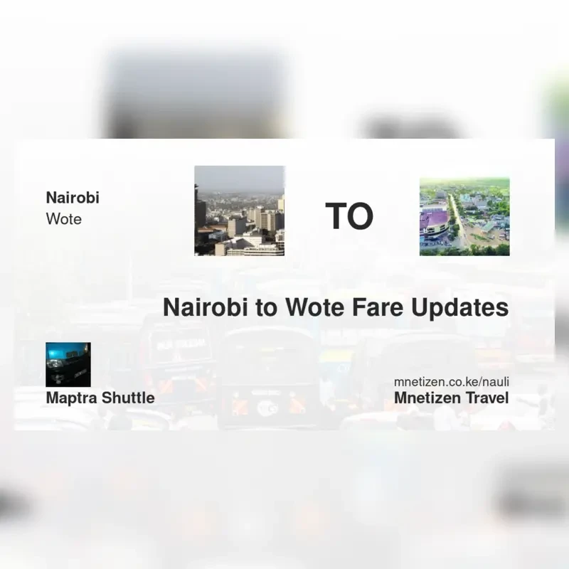The fare from Nairobi to Wote with Maptra Shuttle is ksh 500. Prices may vary during holidays and school terms.