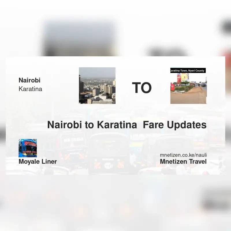 The fare from Nairobi to Karatina with Moyale Liner is . Prices may vary during holidays and school terms.