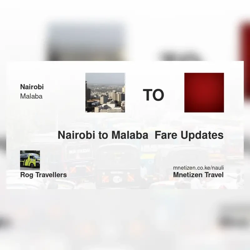 The fare from Nairobi to Malaba with Rog Travellers is . Prices may vary during holidays and school terms.