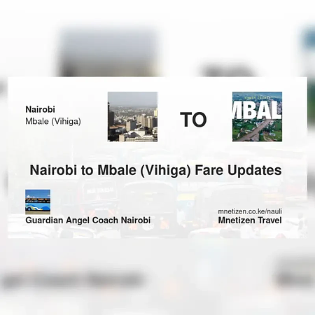 The fare from Nairobi to Mbale (Vihiga) with Guardian Angel Coach Nairobi is ksh 1,900. Prices may vary during holidays and school terms.