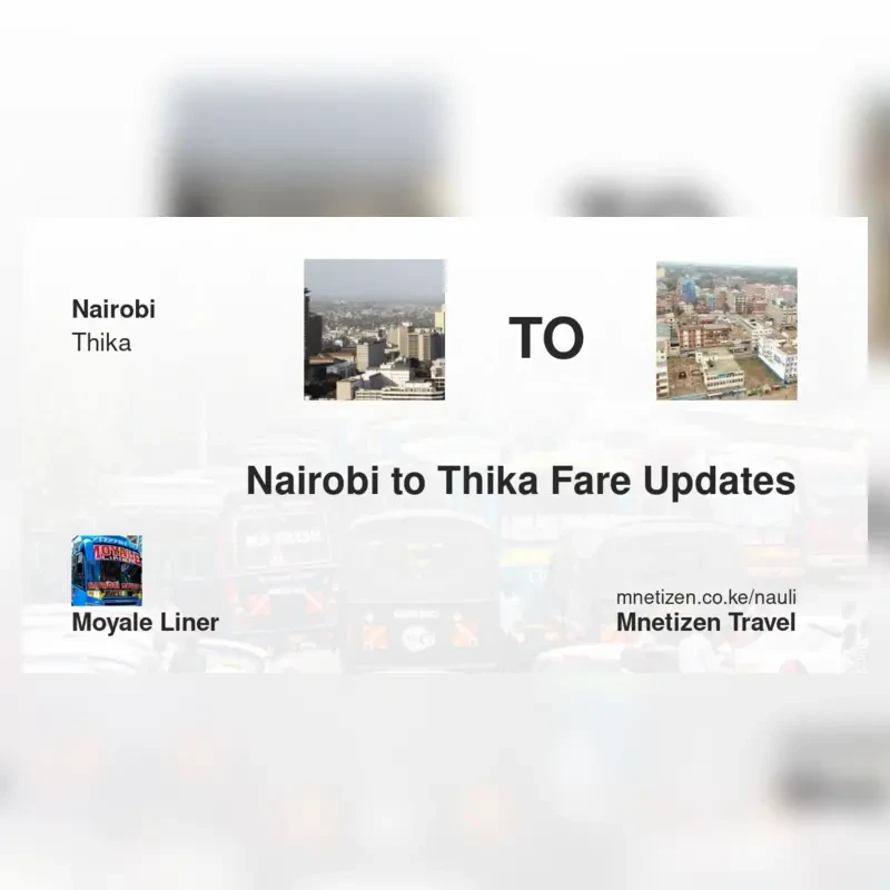 The fare from Nairobi to Thika with Moyale Liner is . Prices may vary during holidays and school terms.