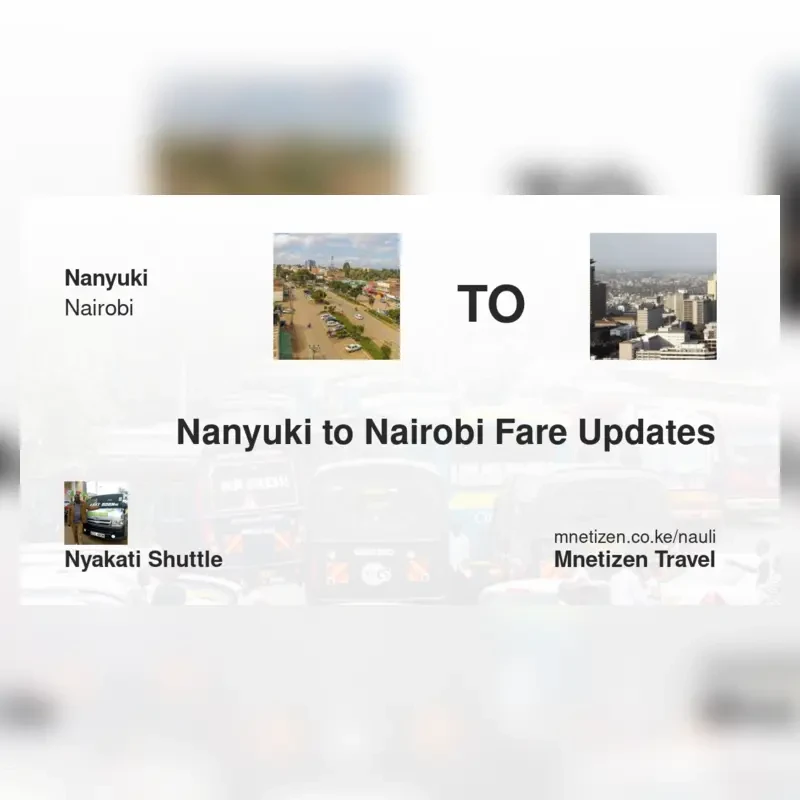 The fare from Nanyuki to Nairobi with Nyakati Shuttle is ksh 600. Prices may vary during holidays and school terms.