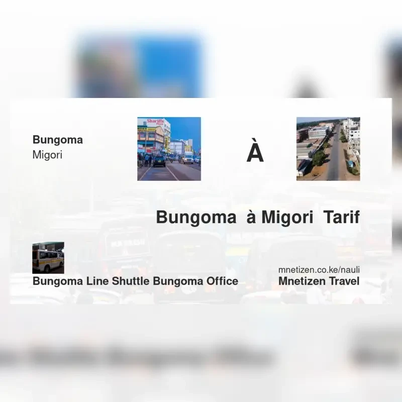 Top operators on this route include Bungoma line shuttle bungoma office . Check current schedules and fares.