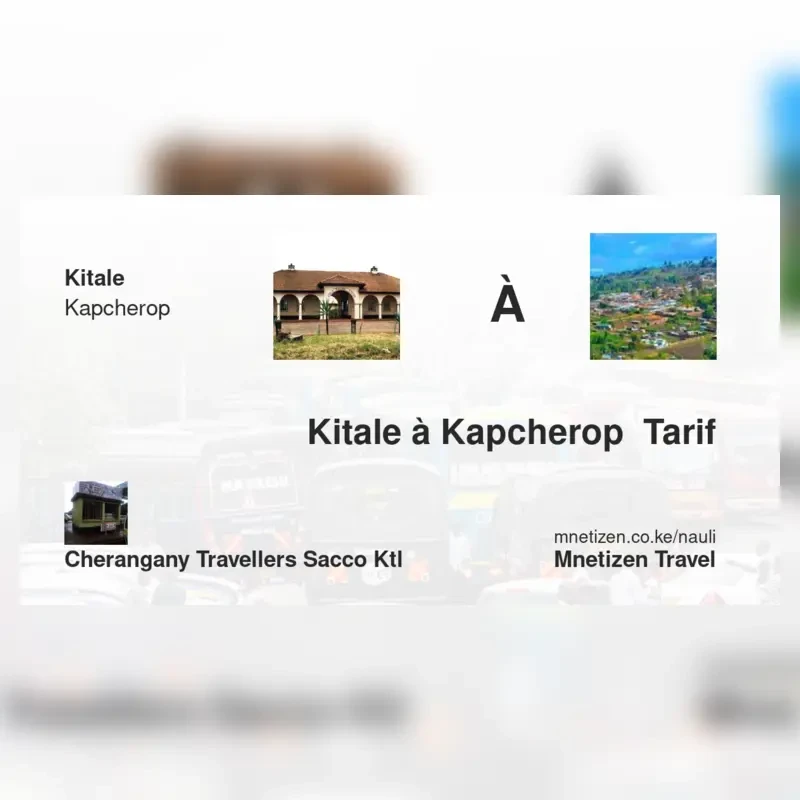 Cherangany Travellers SACCO ktl is a top choice for this route. Alternatives include: Cherangany Travellers SACCO ktl, Meditation shuttle . We also recommend Cherangany Travellers SACCO ktl.