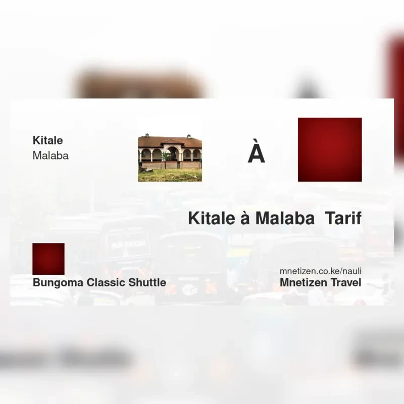 The fare from Kitale to Malaba with Bungoma classic shuttle is . Prices may vary during holidays and school terms.