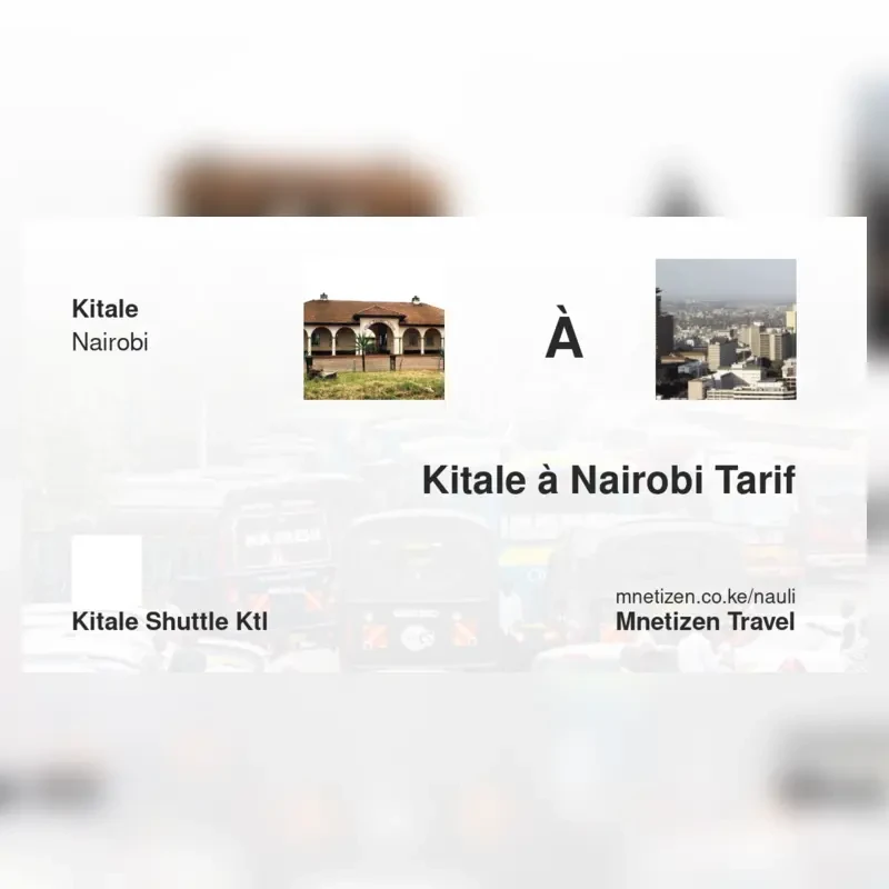 The fare from Kitale to Nairobi with Kitale shuttle ktl is . Prices may vary during holidays and school terms.
