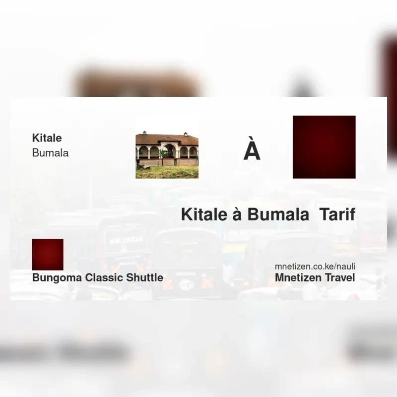 The fare from Kitale to Bumala with Bungoma classic shuttle is . Prices may vary during holidays and school terms.