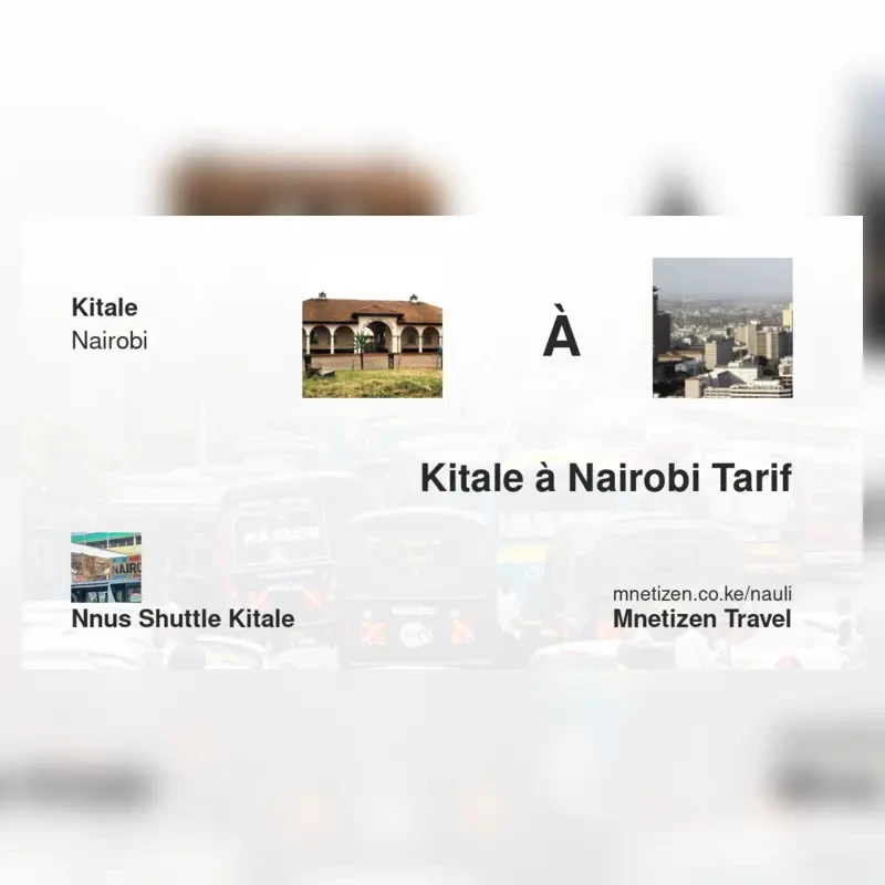 The fare from Kitale to Nairobi with Nnus shuttle Kitale is . Prices may vary during holidays and school terms.