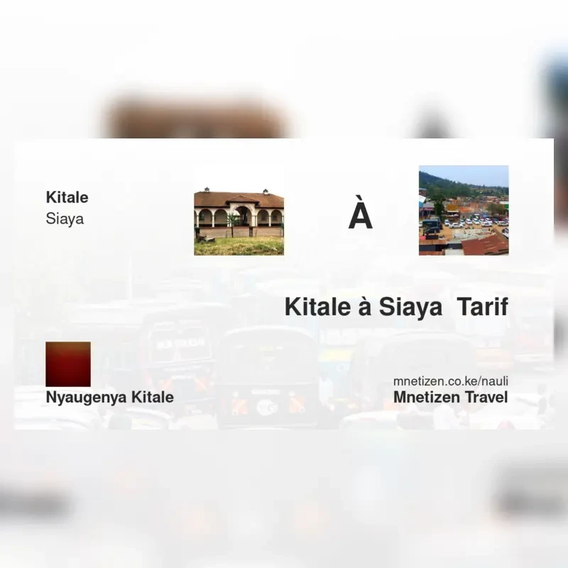 The fare from Kitale to Siaya with Nyaugenya kitale is . Prices may vary during holidays and school terms.