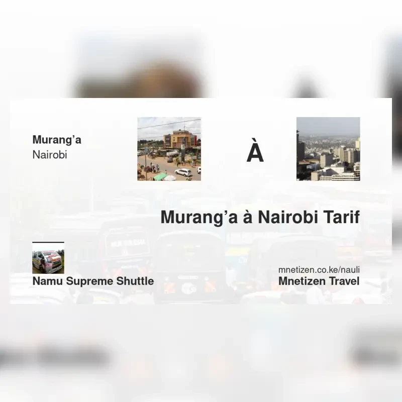 The fare from Murang’a to Nairobi with Namu Supreme Shuttle is . Prices may vary during holidays and school terms.