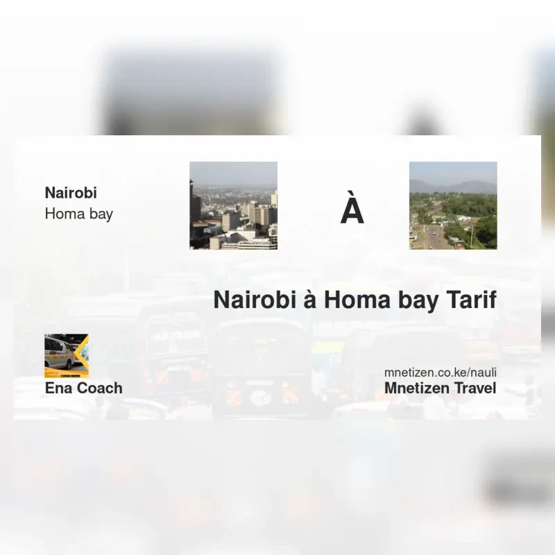 The fare from Nairobi to Homa Bay with ENA Coach is . Prices may vary during holidays and school terms.