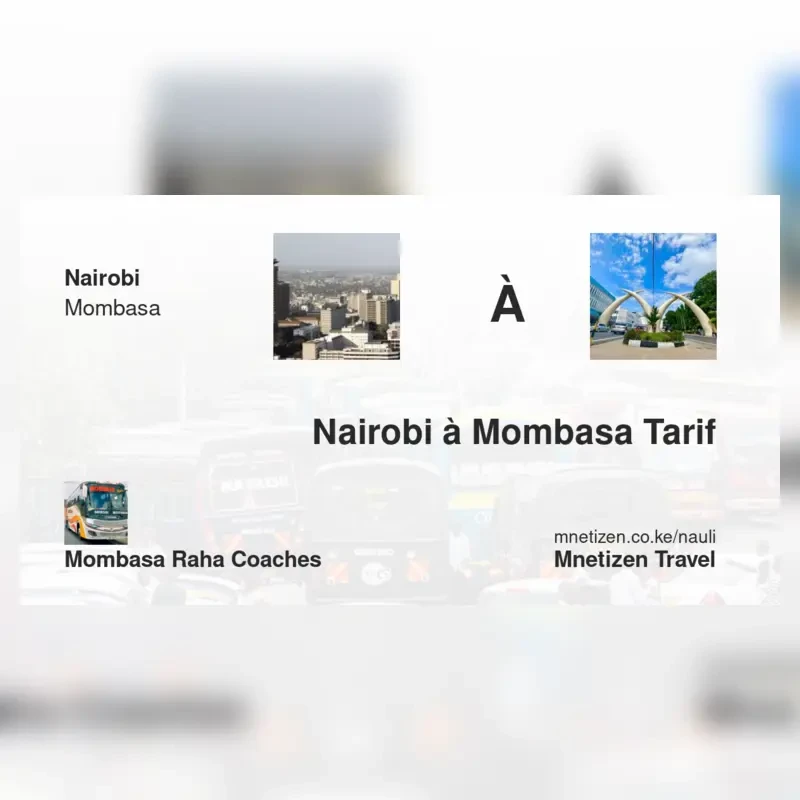 The fare from Nairobi to Mombasa with Mombasa Raha Coaches is . Prices may vary during holidays and school terms.