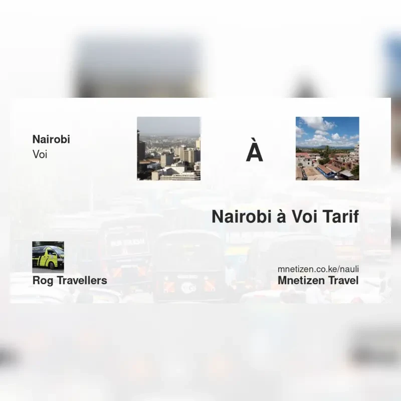 The fare from Nairobi to Voi with Rog Travellers is . Prices may vary during holidays and school terms.