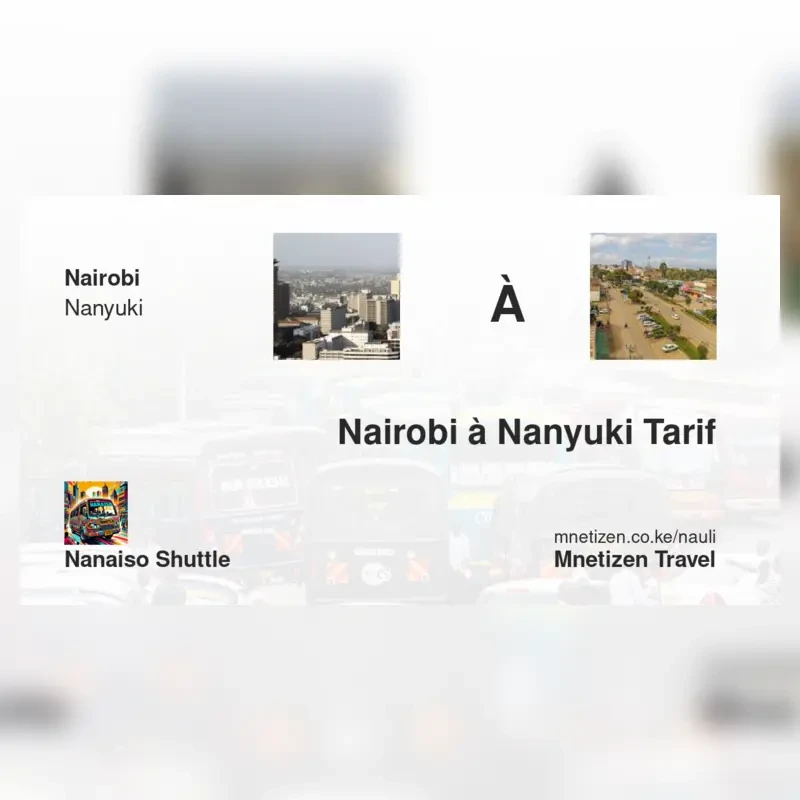 The fare from Nairobi to Nanyuki with Nanaiso Shuttle is . Prices may vary during holidays and school terms.