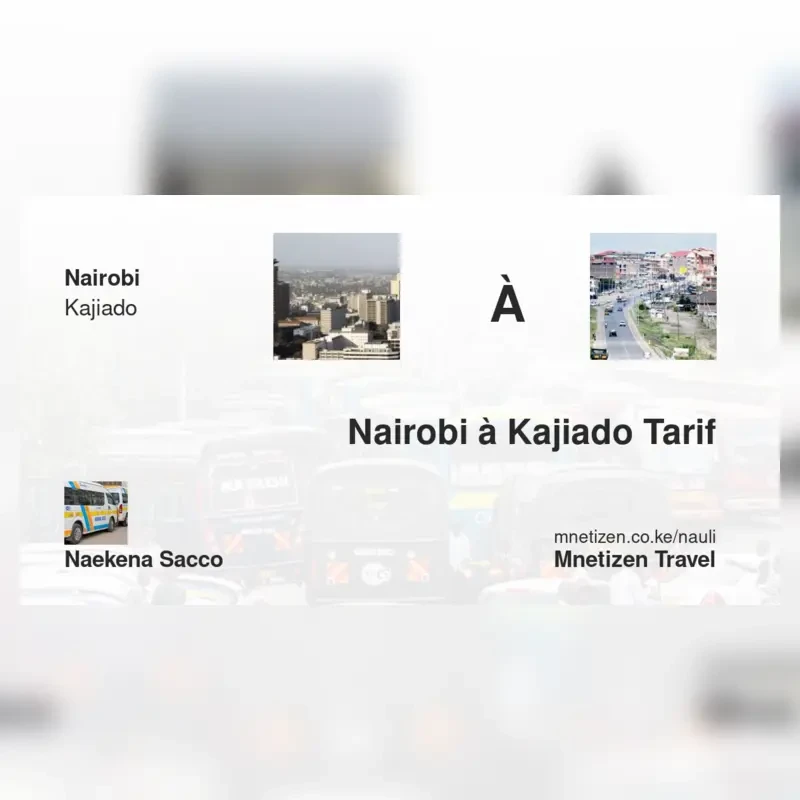 The fare from Nairobi to Kajiado with Naekena Sacco is . Prices may vary during holidays and school terms.