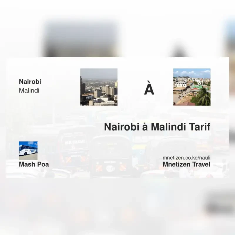 The fare from Nairobi to Malindi with Mash Poa is . Prices may vary during holidays and school terms.