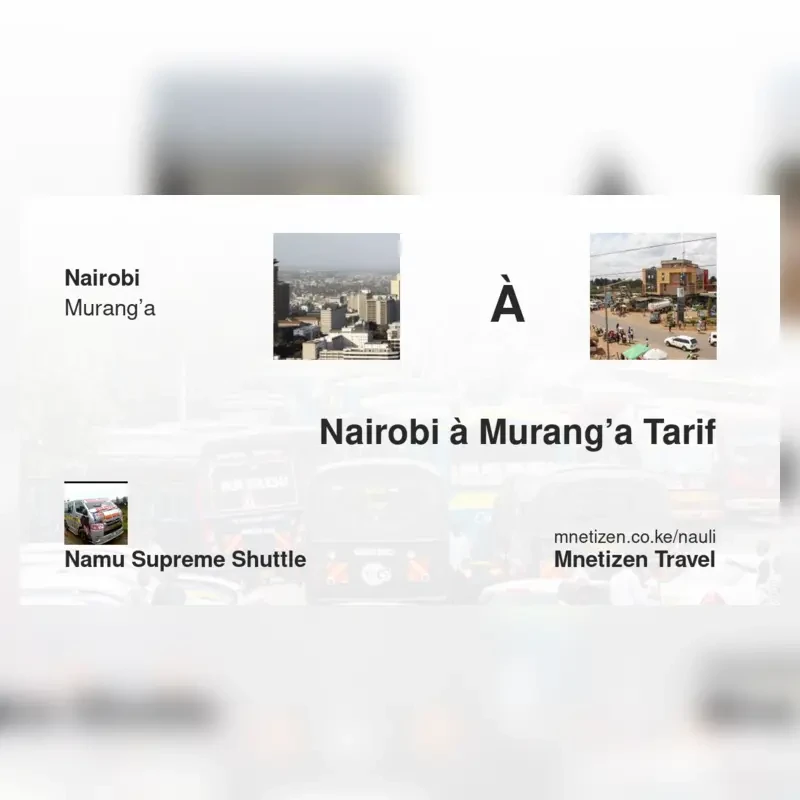 Nairobi to Murang’a Navette fare, Online Navette booking Nairobi-Murang’a, Namu Supreme Shuttle ticket Nairobi-Murang’a, Compare Navette fares Nairobi-Murang’a, Book Navette online Nairobi-Murang’a, Schedule Navette Nairobi-Murang’a, Cheap Navette tickets Kenya