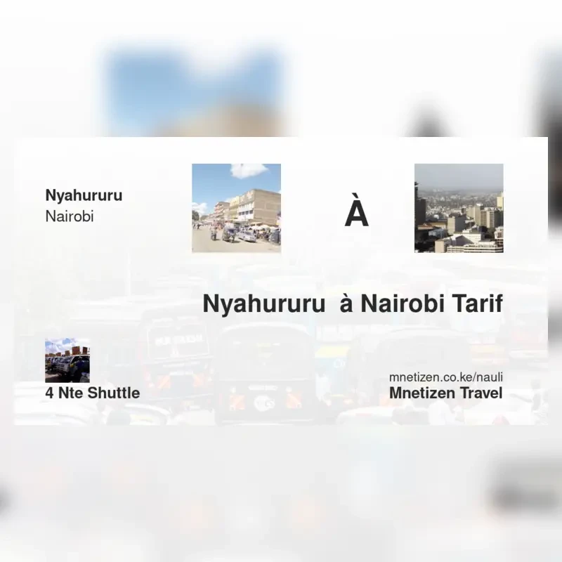 Top operators on this route include 2NK Shuttle Nyahururu , 4NTE Shuttle . Check current schedules and fares.