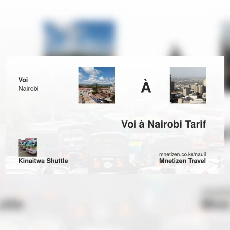 The fare from Voi to Nairobi with Kinaitwa Shuttle is . Prices may vary during holidays and school terms.