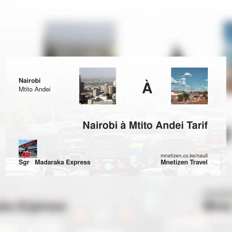 The fare from Nairobi to Mtito Andei with SGR - Madaraka Express is ksh 740. Prices may vary during holidays and school terms.