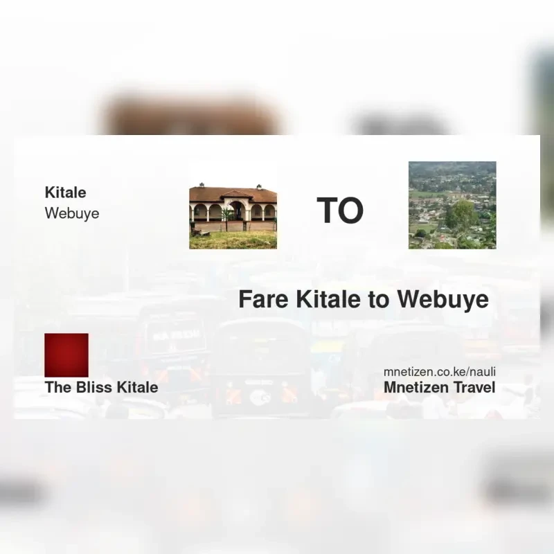 The fare from Kitale to Webuye with The Bliss kitale is . Prices may vary during holidays and school terms.