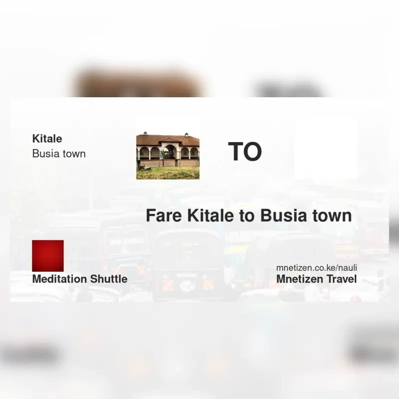 The fare from Kitale to Busia Town with Meditation shuttle is . Prices may vary during holidays and school terms.