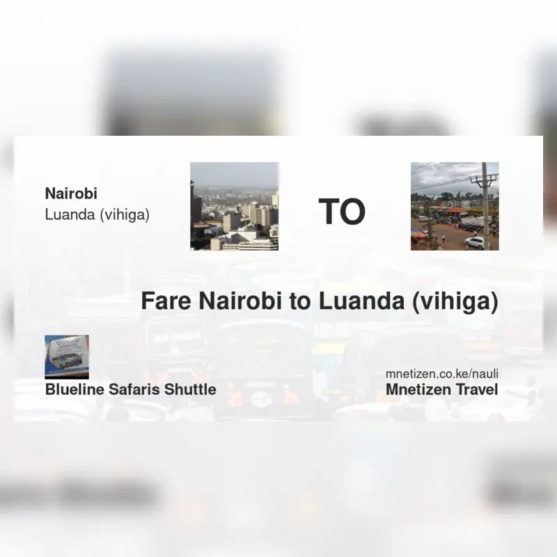 Nairobi to Luanda (Vihiga) Fare & Online Booking | Blueline Safaris Shuttle