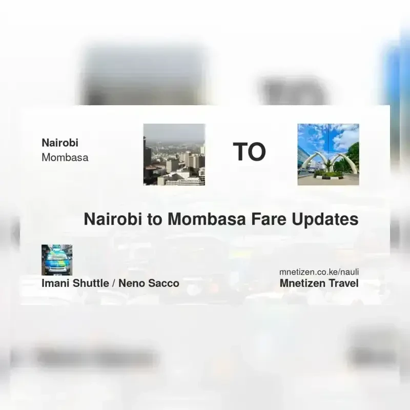 Nairobi to Mombasa Fare & Online Booking | Imani Shuttle / Neno Sacco