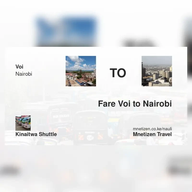 The fare from Voi to Nairobi with Kinaitwa Shuttle is . Prices may vary during holidays and school terms.