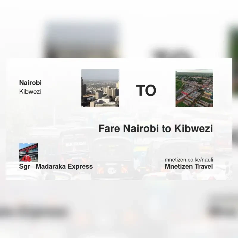 The fare from Nairobi to Kibwezi with SGR - Madaraka Express is ksh 600. Prices may vary during holidays and school terms.