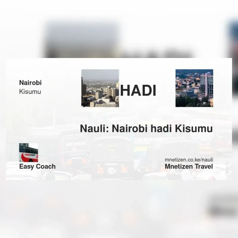 The fare from Nairobi to Kisumu with Easy Coach is . Prices may vary during holidays and school terms.